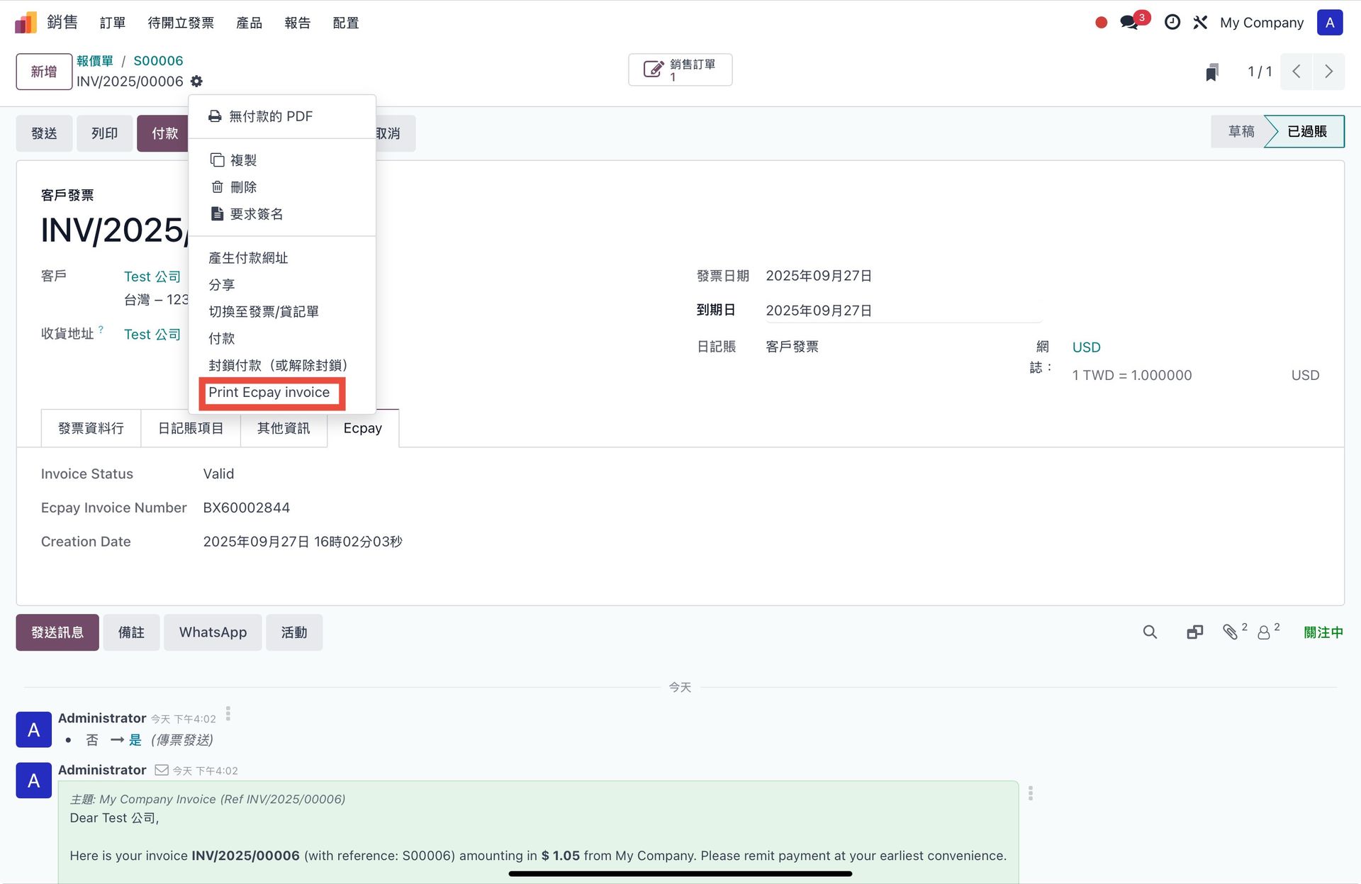 要在 Odoo 18 中導入綠界電子發票,您可以按照以下步驟進行設置和配置。以下是一般的步驟,具體的操作可能會根據您的需求和環境有所不同: